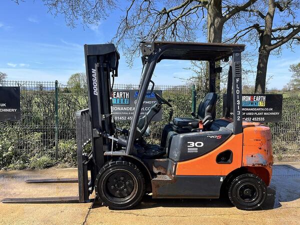 Doosan G30GP With 1009 Hours. LPG, Lifts 3 Tonne, Max Height 4.7m, Triple Free Lift Mast, Container Spec, Side Shift, Supplied With Pallet Forks.