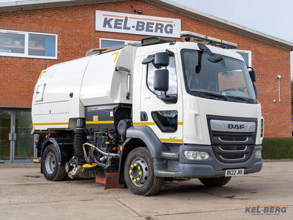 2022 DAF LF230 4x2 rigid with Bucher road sweeper body, available from Kel-Berg UK. This right-hand-drive sweeper has covered 119,300 kms with 2,889 donkey engine hours and holds a current MOT until 30/06/2026, ru...