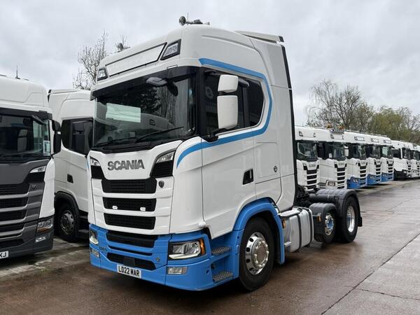 2022 (22) Scania S540 High Sleeper Cab, 6X2 Small Midlift, Automatic Gearbox, Fixed Fifth Wheel, Rear Mounted Batteries, 480L Fuel Capacity, Gardener Denver Blowing Gear, Alcoa Alloys, Sun Visor, Air Horns, Illumi...