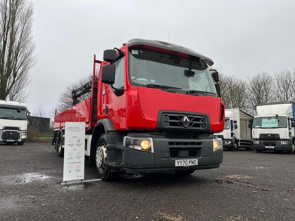 2019 RENAULT D 26.320 6X2 FLATBED 26T FITTED WITH FRONT MOUNTED ATLAS 88.3 REMOTE CRANE- 323,200 KMS- DAY CAB-AUTOMATIC- CRUISE CONTROL-AIRCON-FRONT ELECTRIC WINDOWS- CENTRAL LOCKING- MAY 2026 MOT- EXCELLENT TYRE...